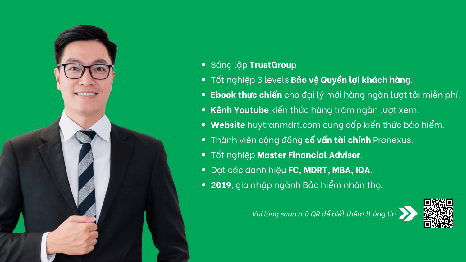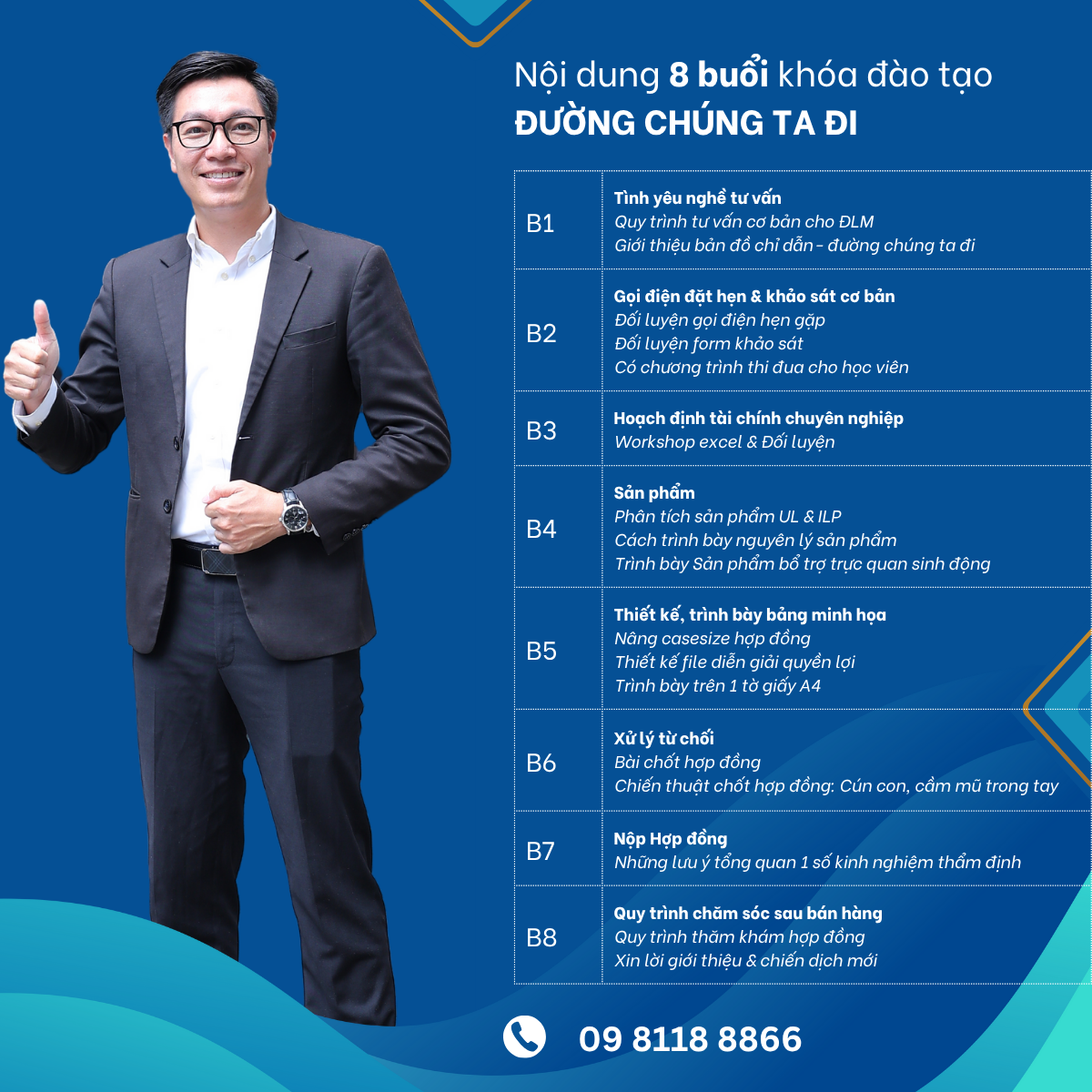 Chuỗi 8 buổi học trực tuyến cùng Huy Trần MDRT sẽ giúp bạn áp dụng được nhiều kiến thức thực chiến với kinh nghiệm đã bán gần 4 tỷ phí cá nhân trong ngành BHNT.